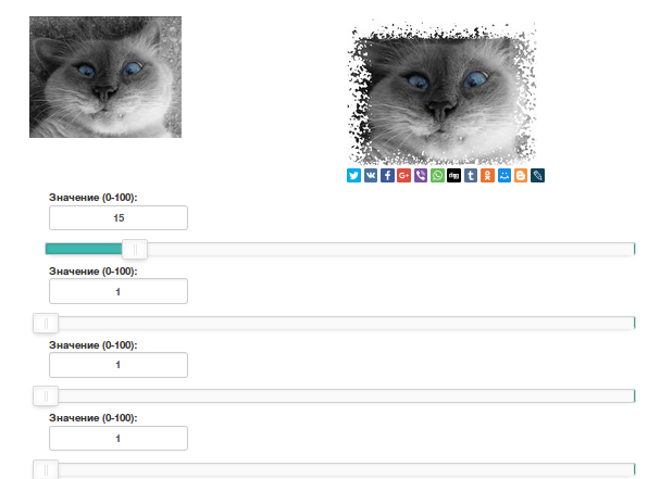 Полученной картинкой можно сразу поделиться с друзьями в социальных сетях, нажав на кнопку под картинкой.